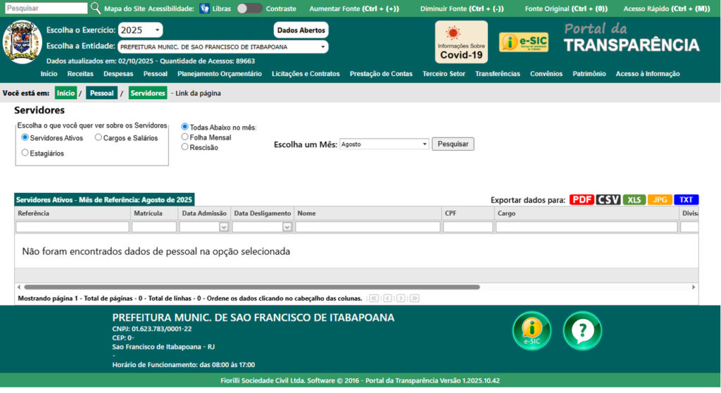 Caixa de Pandora: Portal da Transparência da Prefeitura de São Francisco de Itabapoana tem apagão de dados sobre servidores, comissionados e contratados